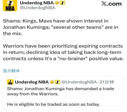 同样来自Shams的消息源,去年休赛期签约的两年4680万美元续约合同(第二年球队选项),库明加认为自己是被迫签署的,此举进一步恶化了他与勇士管理层的关系。