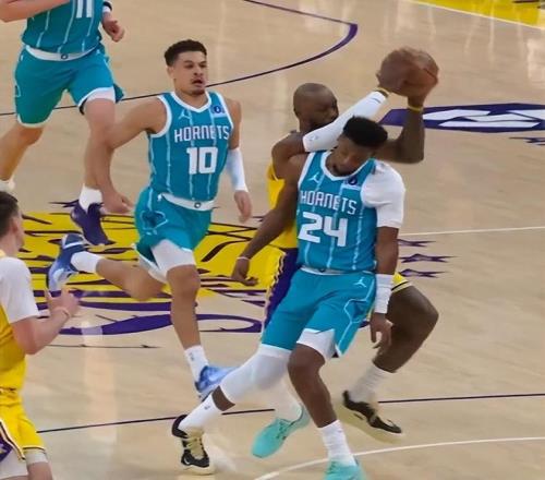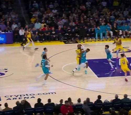 当时詹姆斯的犯规瞬间引爆了讨论,最主要的是,他肘了对面球员,裁判竟然能吹他罚球,对手犯规,这种哨子确实很离谱。而且非常无语的是,就在裁判给出这样的吹罚之后,湖人队竟然还落后,在上半场罚球领先的情况下,他们却面对倒数的黄蜂,打出了55-64的比分,詹皇半场狂轰10分已经上双,却仍然带不动迷茫的队友。