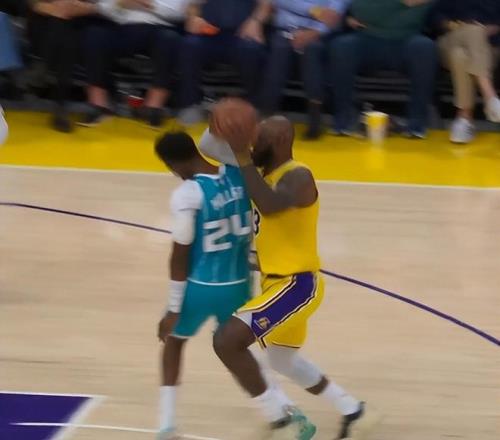 湖人对阵黄蜂的比赛进程让人没有想到,湖人队竟然和东部倒数第4名打的有来有回,詹姆斯在比赛当中的一个回合引爆了争议和讨论,他直接肘击对手球员米勒,裁判竟然吹了对方的犯规,甚至连挑战都失败了。