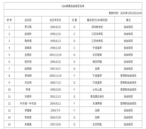 体育播报1月16日宣 CBA官网更新自由球员名单,深圳老将罗汉琛在列。